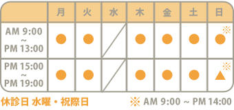 土日来院の際は事前にお電話にて営業を確認下さい。